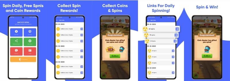 Spin Master Daily, Free Spins, and the Coin Rewards app are designed for users to get free spins and coin bonuses from daily links and other events.